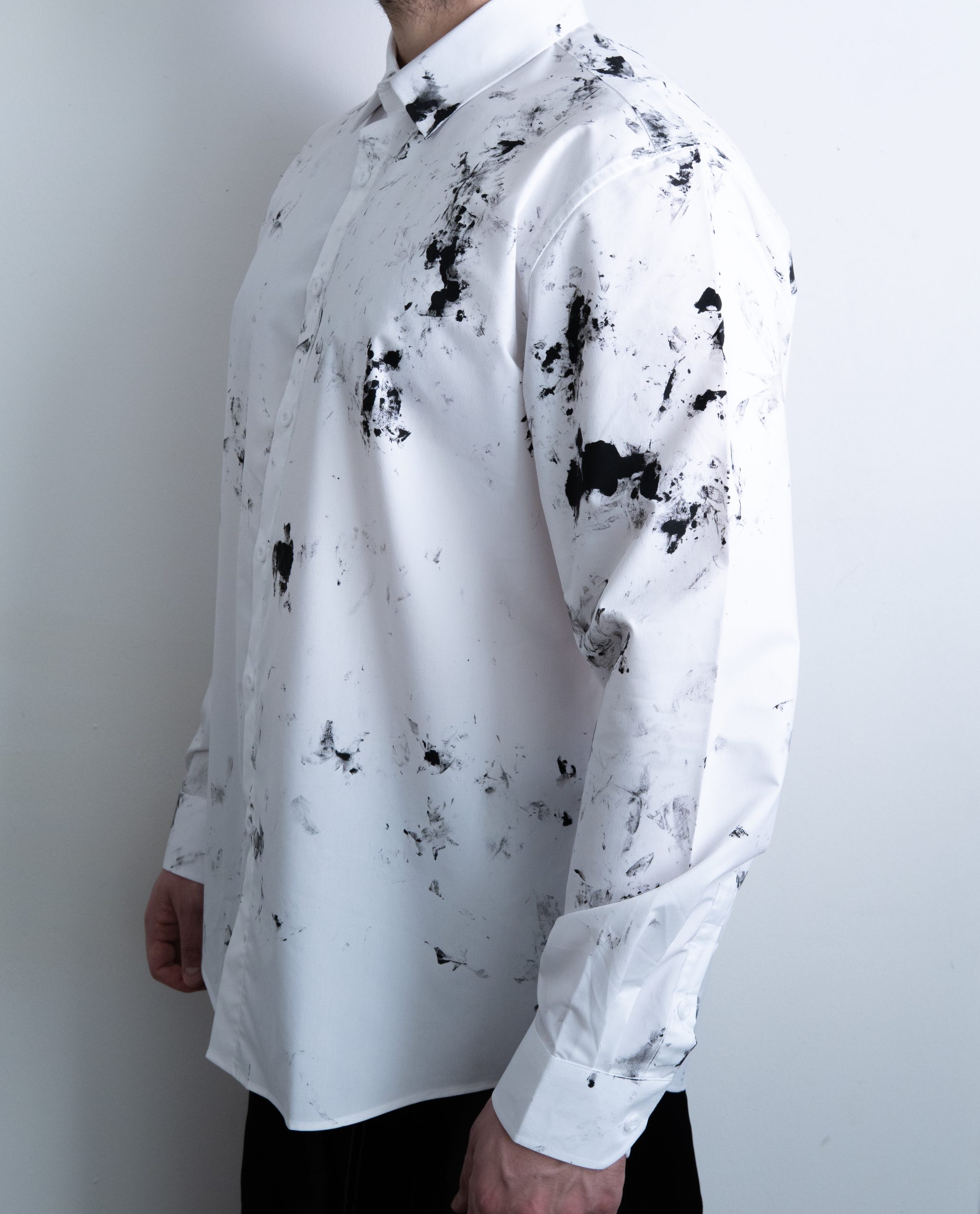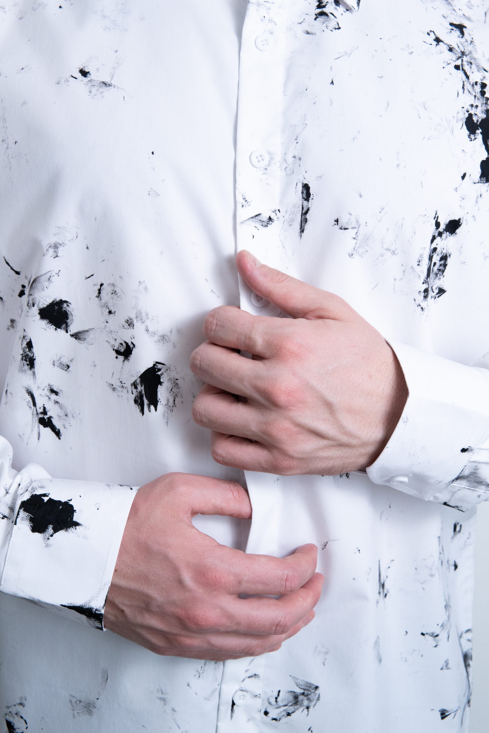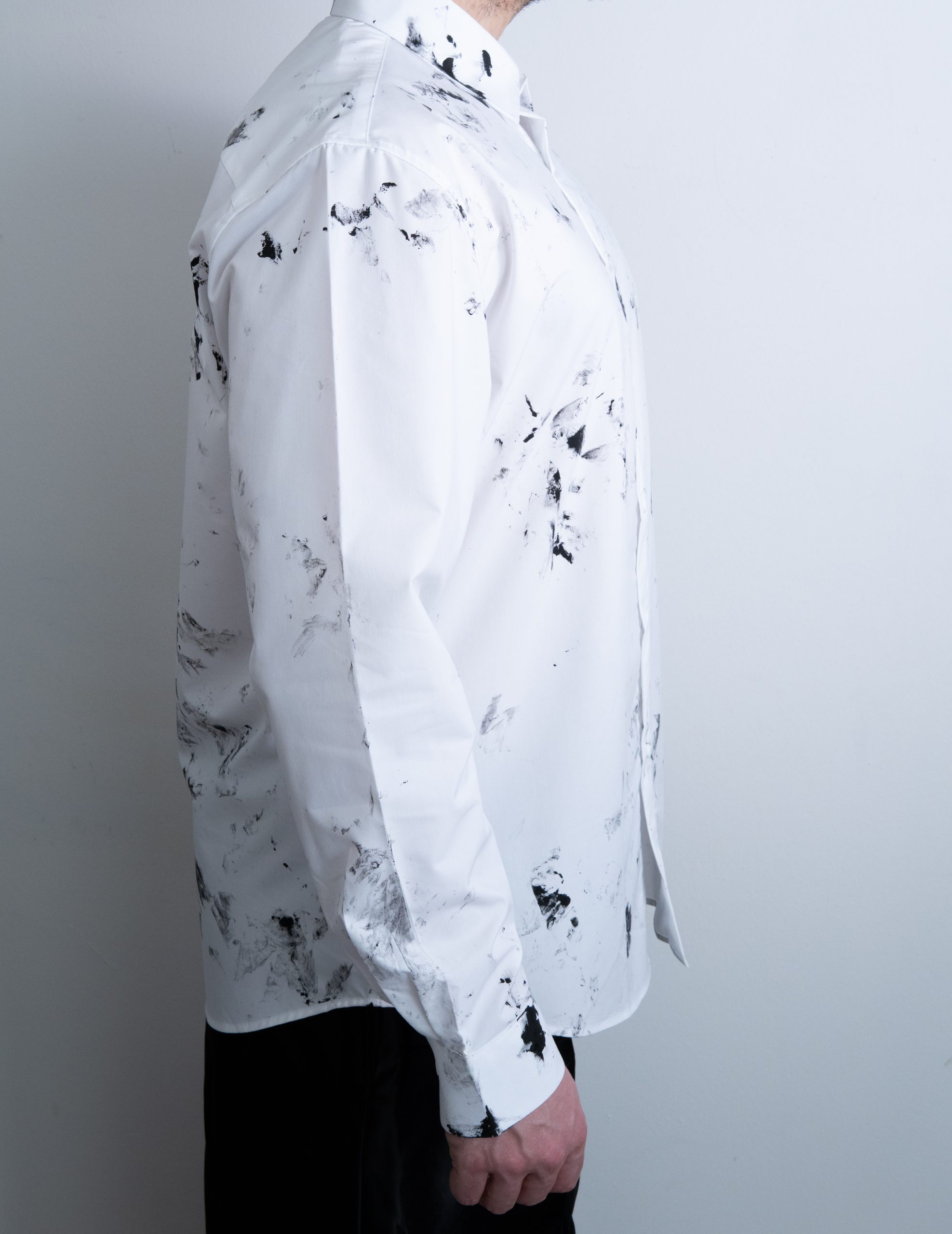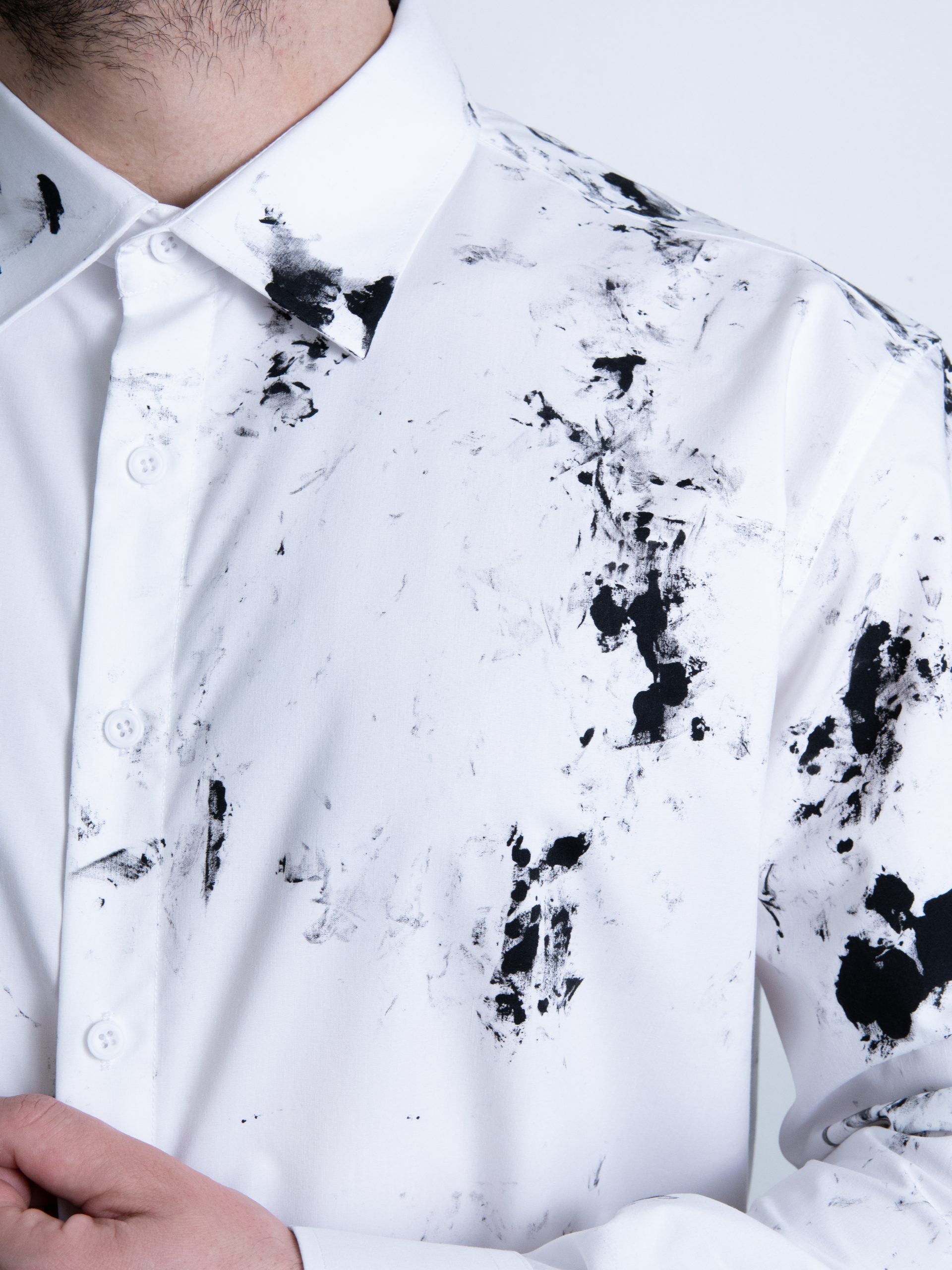 WHITE SHIRT WITH HAND – PAINTED BLACK STAINS