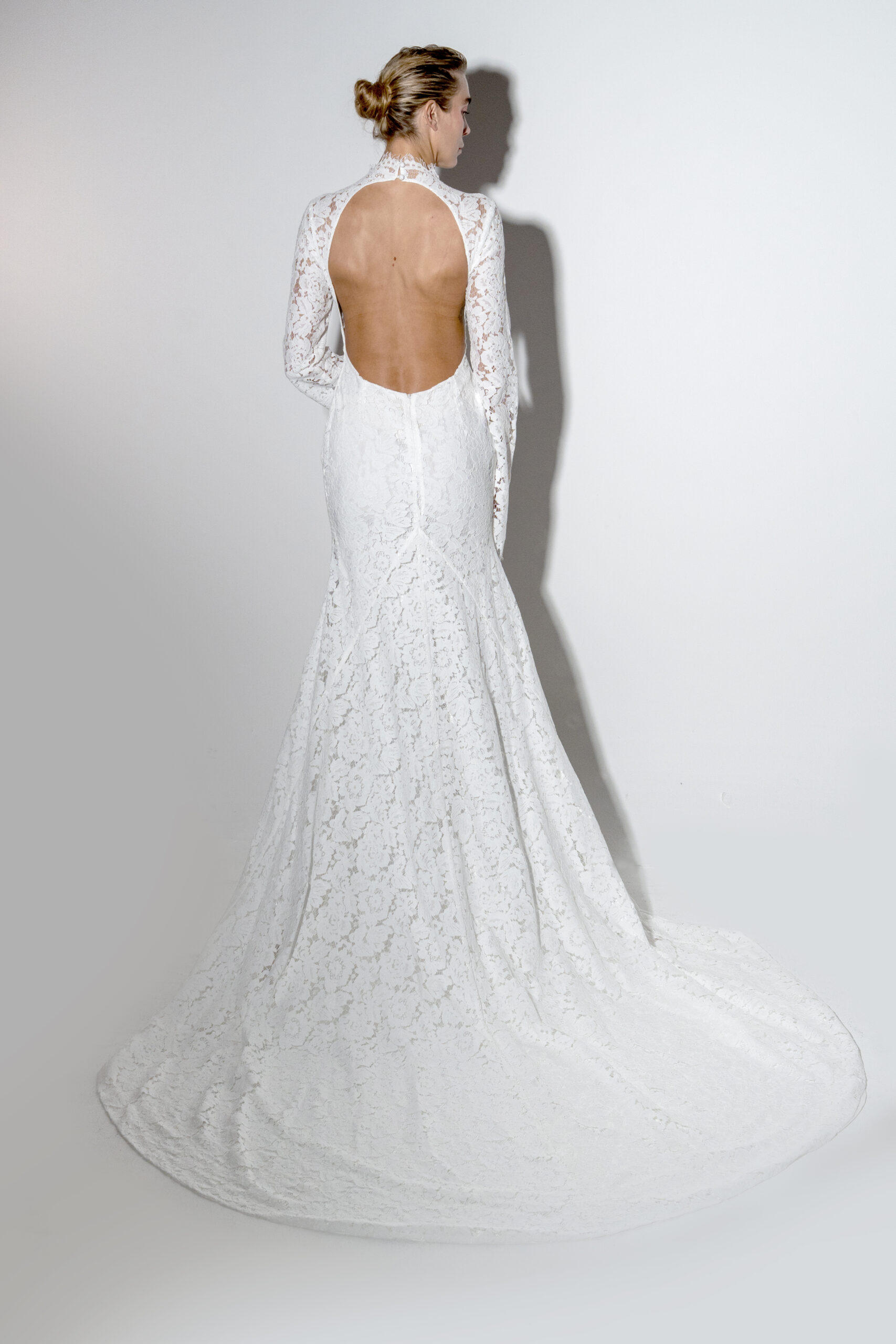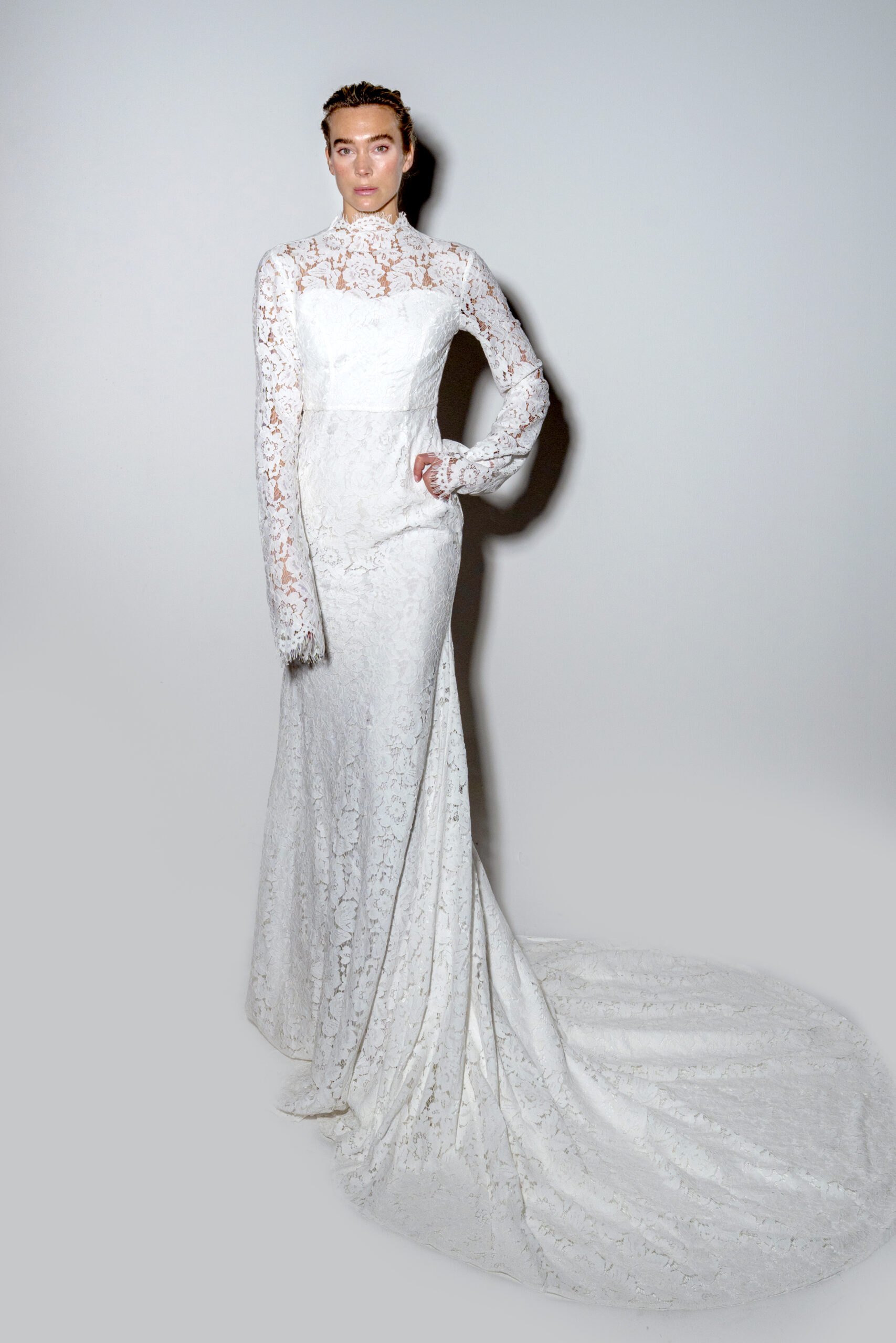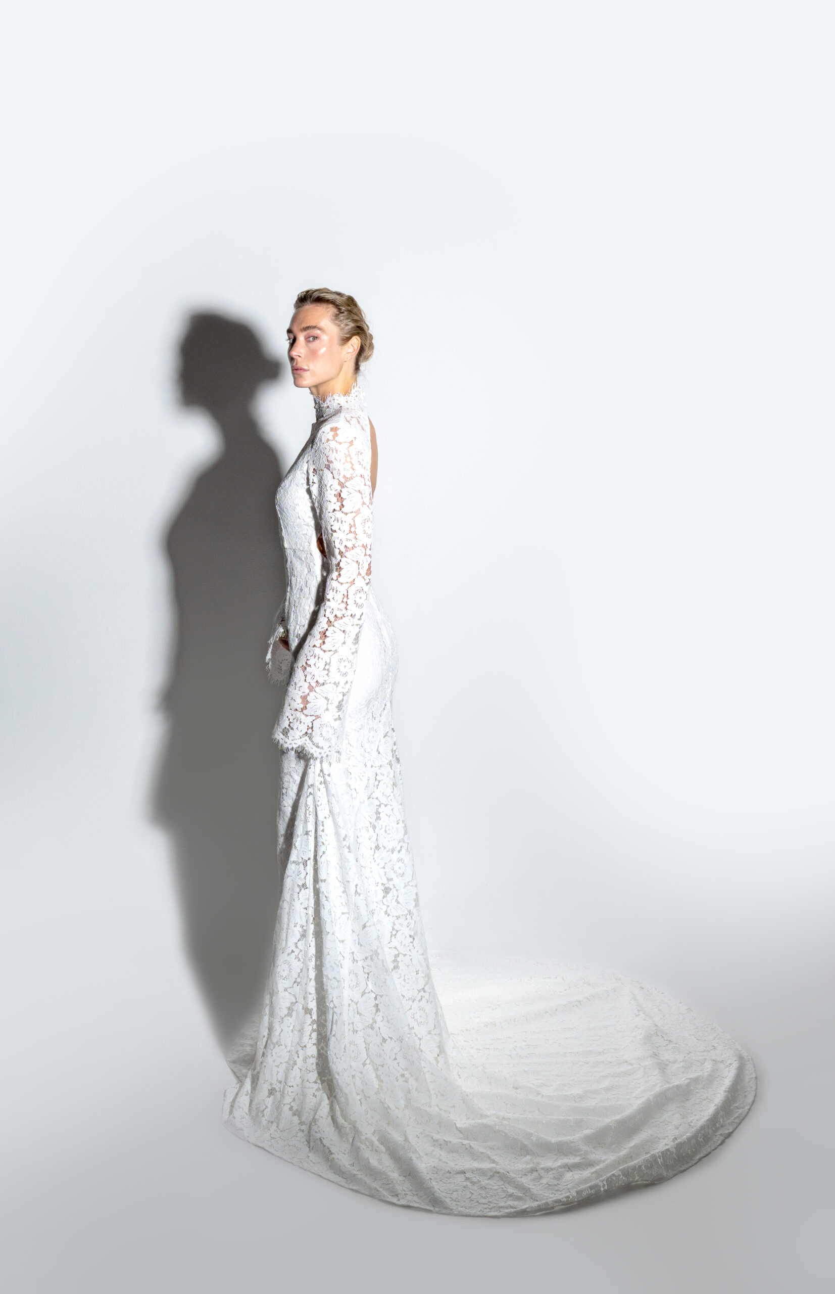 dramatic long sleeves and mermaid silhouette with a train and sexy