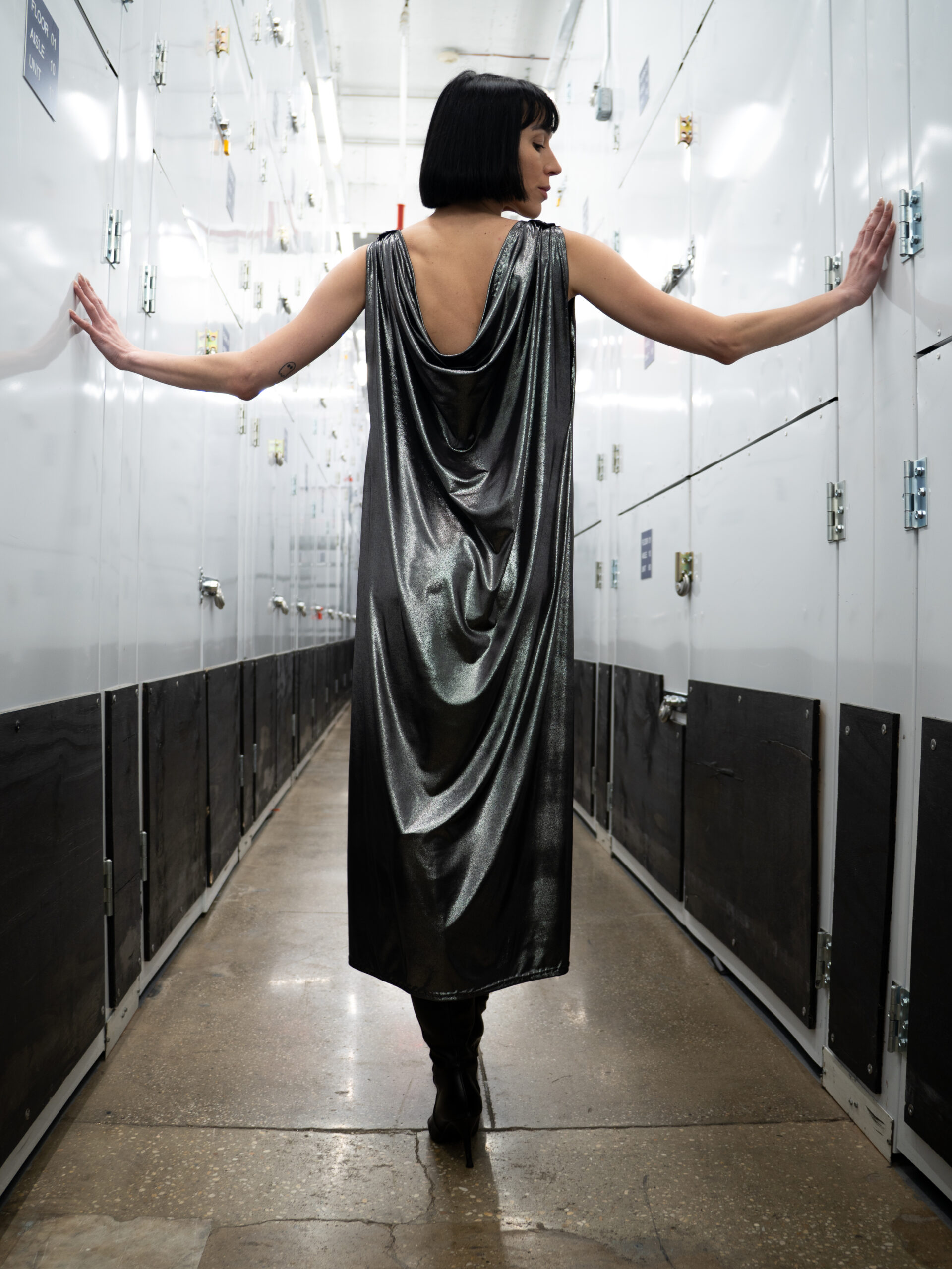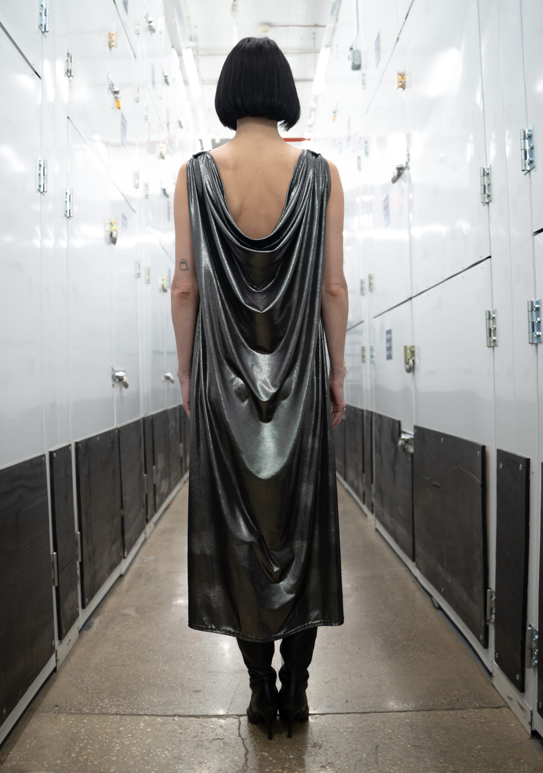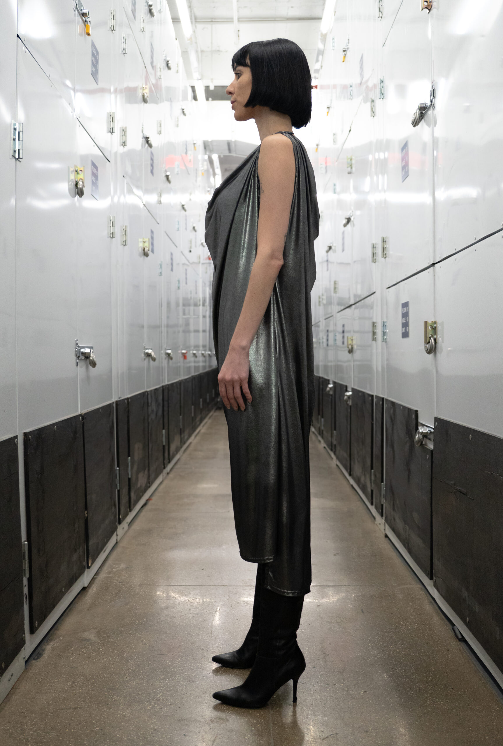 Be the first to review “LIQUID METALLIC DRAPED DRESS”